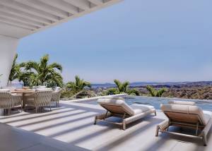 El exterior de la villa está diseñado para ofrecer el máximo disfrute del clima mediterráneo. Cuenta con un jardín privado, perfecto para relajarse o para actividades al aire libre. La terraza es un espacio ideal para disfrutar de las vistas al mar y de las puestas de sol. Además, la villa dispone de una piscina privada, que añade un toque de exclusividad y permite disfrutar de refrescantes baños en la privacidad de tu hogar. El jacuzzi es otro de los elementos destacados, proporcionando un espacio de relajación y bienestar.