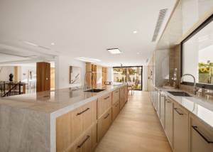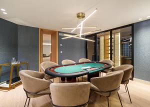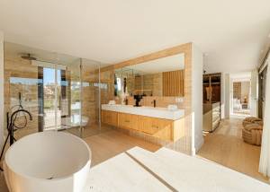 El interior de la villa está diseñado con un enfoque en el lujo y la funcionalidad. Cada uno de los seis dormitorios está equipado con armarios empotrados, proporcionando un amplio espacio de almacenamiento. Los seis baños están diseñados con acabados de alta calidad, asegurando un ambiente de confort y elegancia. La villa cuenta con calefacción por suelo radiante y aire acondicionado, garantizando una temperatura agradable durante todo el año. La cocina está equipada con electrodomésticos de última generación, facilitando las tareas diarias y ofreciendo un espacio ideal para los amantes de la gastronomía. Además, la villa incluye un spa privado, proporcionando un espacio de relajación y bienestar sin necesidad de salir de casa.