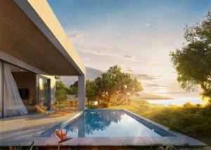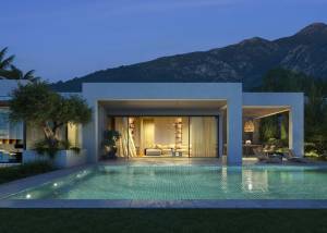 Las villas cuentan con un diseño exterior que integra un jardín privado y una terraza, perfectos para disfrutar del clima mediterráneo. Además, cada propiedad dispone de una piscina privada, ofreciendo un espacio ideal para el relax y el entretenimiento al aire libre. La opción de incluir un solárium añade un toque adicional de lujo, permitiendo disfrutar de las vistas panorámicas al mar en un entorno exclusivo y privado.