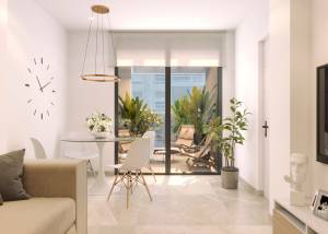 Los interiores de los apartamentos y áticos han sido diseñados con atención al detalle, ofreciendo un ambiente moderno y acogedor. Los suelos de gres porcelánico aportan un toque de elegancia y durabilidad a cada espacio. La comodidad está garantizada con la preinstalación de aire acondicionado, asegurando un ambiente agradable durante todo el año. Las cocinas están equipadas con electrodomésticos de alta calidad, facilitando el día a día. Los armarios empotrados ofrecen un almacenamiento eficiente y discreto. Además, cada propiedad cuenta con un sistema de videoportero, proporcionando seguridad y tranquilidad a los residentes. Las opciones de distribución incluyen propiedades de 1 o 2 dormitorios y 1 o 2 baños, adaptándose a diferentes necesidades y preferencias. Las terrazas privadas son un espacio adicional para disfrutar del aire libre y las vistas.