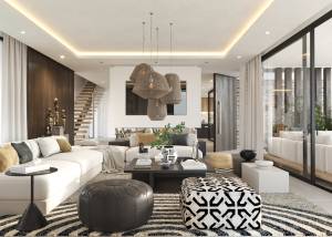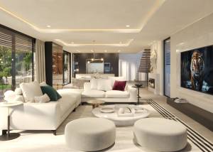 L'intérieur de ces villas est conçu pour offrir un maximum de confort et de fonctionnalité. Les propriétés disposent de quatre ou cinq chambres, selon la typologie disponible, et d'un nombre équivalent de salles de bains, assurant espace et intimité pour tous les membres de la famille. Les placards intégrés offrent un rangement efficace et élégant. La cuisine est équipée d'appareils électroménagers de haute qualité, facilitant la vie quotidienne avec style et confort. Le design intérieur se concentre sur l'espace et la luminosité, créant une ambiance accueillante et moderne. De plus, chaque villa comprend un garage, assurant un espace sécurisé pour le stationnement des véhicules.