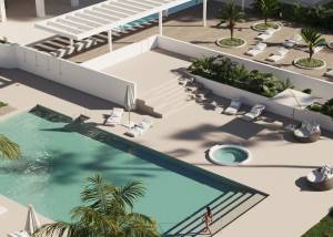 Le complexe résidentiel offre une large gamme d'espaces communs conçus pour le plaisir et le bien-être de ses résidents. Parmi les installations, on trouve une piscine communautaire et un jacuzzi, parfaits pour se détendre et profiter du climat méditerranéen. Les amateurs de sport trouveront une salle de sport communautaire bien équipée et un court de paddle. Les espaces verts offrent un environnement calme et verdoyant, tandis que l'aire de jeux est idéale pour le divertissement des plus jeunes. De plus, le complexe dispose d'un garage communautaire, offrant confort et sécurité pour les véhicules des résidents.