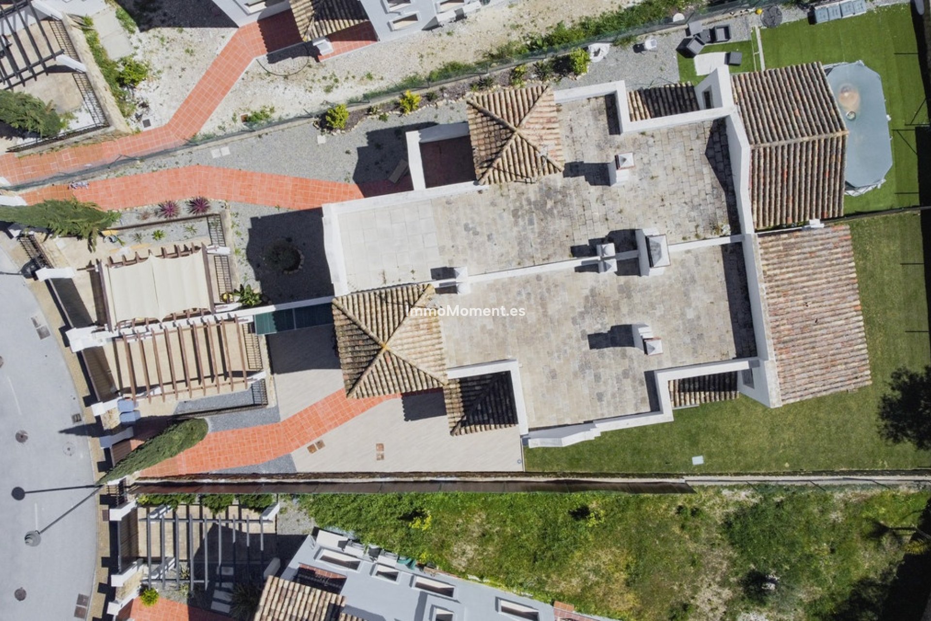 Le niveau supérieur comprend quatre chambres bien aménagées et quatre salles de bains (dont deux sont en suite), offrant un superbe hébergement pour les familles ou les invités. Les suites parentales et les chambres d'hôtes sont élégamment finies, certaines offrant un accès direct à la terrasse et un jardin serein ou une vue sur la rue. Les espaces extérieurs de la propriété sont parfaits pour se détendre ou se divertir dans le climat méditerranéen. Le carport offre un stationnement sécurisé au sein de la communauté fermée, contribuant ainsi à la tranquillité d'esprit.
