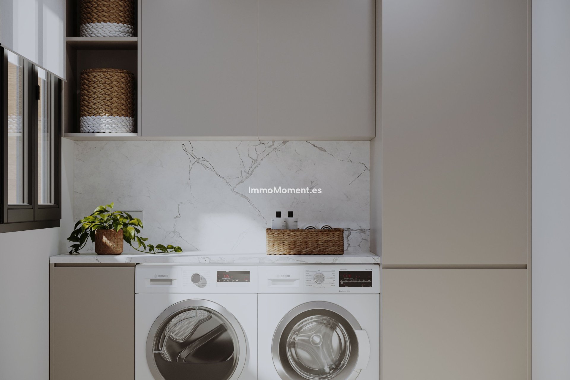 L'intérieur de ces maisons mitoyennes reflète un design moderne et fonctionnel avec des finitions de haute qualité. Les sols en porcelaine apportent une touche d'élégance et sont faciles à entretenir. Chaque propriété est équipée d'un système domotique permettant de contrôler efficacement divers aspects de la maison. La climatisation est assurée grâce à la climatisation et au chauffage par le sol, garantissant un confort maximal tout au long de l'année. Les cuisines sont entièrement équipées d'appareils de dernière génération, facilitant les tâches quotidiennes. De plus, les maisons disposent de volets électriques et d'un vidéophone, augmentant la sécurité et le confort. Les placards intégrés offrent un espace de rangement généreux, tandis que la possibilité de recharger des véhicules électriques dans le garage privé ajoute une touche de modernité et de durabilité.