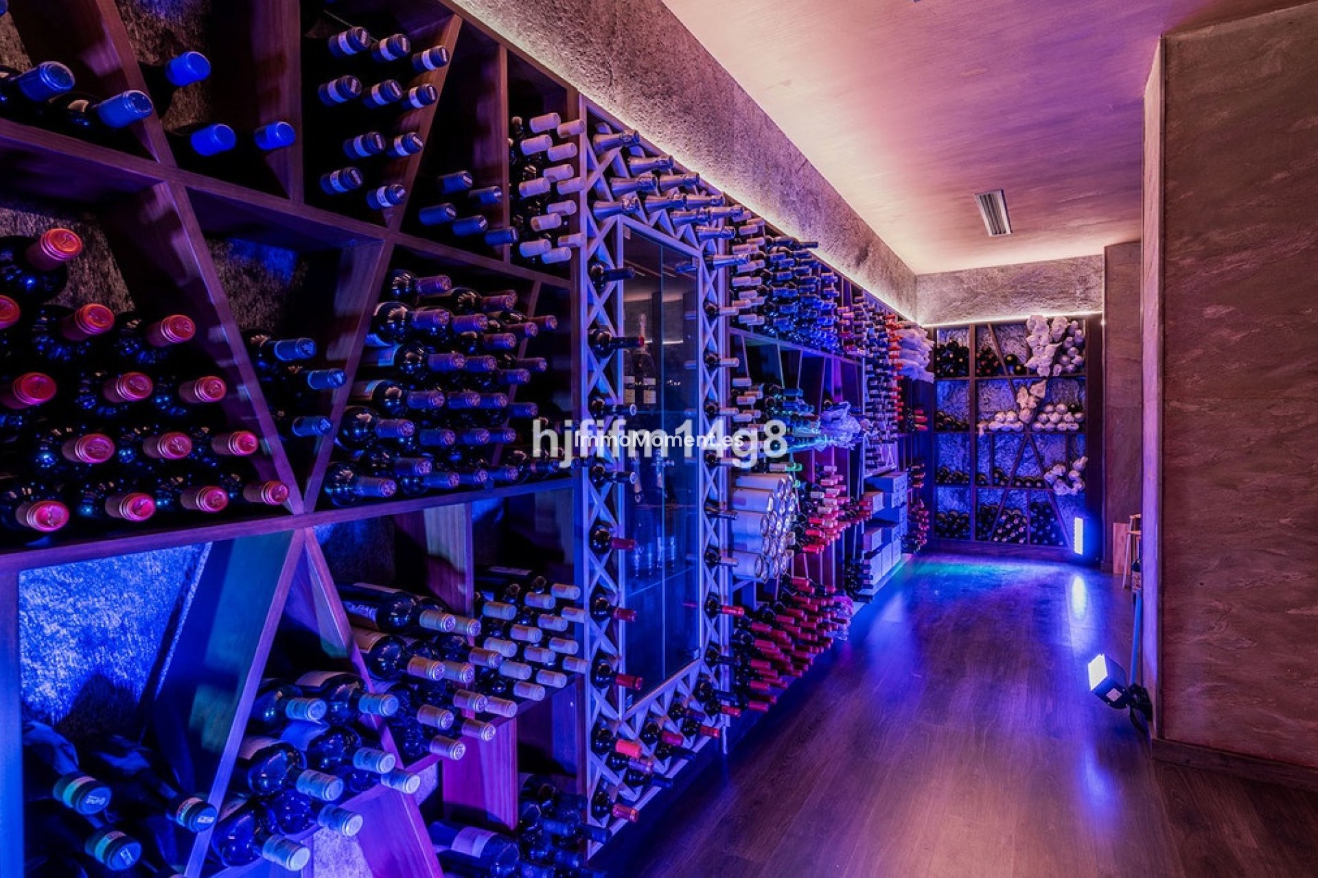 Le niveau inférieur de la maison comprend un immense espace (environ 400 m²) avec un deuxième salon, une salle à manger et une excellente cave à vin. Il y a quatre grandes chambres à ce niveau qui donnent toutes sur un charmant patio. Trois d'entre elles disposent d'une salle de bains privative et une autre d'une salle de bains séparée. Une buanderie se trouve également à cet étage.