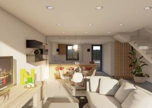 Het interieur van de twee-onder-een-kapwoningen is ontworpen om een gezellige en functionele ruimte te bieden. Met opties van 2 en 3 slaapkamers is elke woning ontworpen om aan de behoeften van verschillende soorten gezinnen te voldoen. De badkamers, allemaal modern en goed uitgerust, zorgen voor comfort en privacy. Elektrische rolluiken en inbegrepen apparaten maken het dagelijks leven gemakkelijker, terwijl ingebouwde kasten efficiënte opslagoplossingen bieden. De indeling van de binnenruimtes is zorgvuldig gepland om natuurlijk licht te maximaliseren en een warme en uitnodigende sfeer in elke hoek van het huis te creëren.