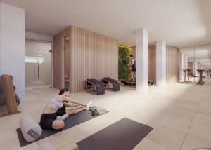 Het wooncomplex biedt een verscheidenheid aan gemeenschappelijke ruimtes die de woonervaring van de bewoners verrijken. De groene gebieden bieden een rustige en groene omgeving, ideaal voor wandelingen of ontspanningsmomenten. Bewoners kunnen actief en gezond blijven dankzij de gemeenschappelijke fitnessruimte, die is uitgerust voor verschillende trainingsroutines. Bovendien is het gemeenschappelijke zwembad perfect voor een verfrissende duik of om te socializen met buren en vrienden.