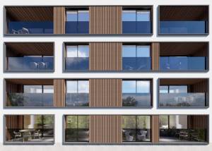 De buitenruimtes van deze woningen zijn ontworpen om optimaal te genieten van het mediterrane klimaat. Alle eigendommen hebben terrassen, perfect om te ontspannen en van het uitzicht op zee te genieten. Bovendien beschikt het complex over een gemeenschappelijk solarium, ideaal om te zonnebaden en te genieten van het panoramische uitzicht. De nabijheid van de zee, op slechts 700 meter, maakt het mogelijk om op elk moment van het strand te genieten.