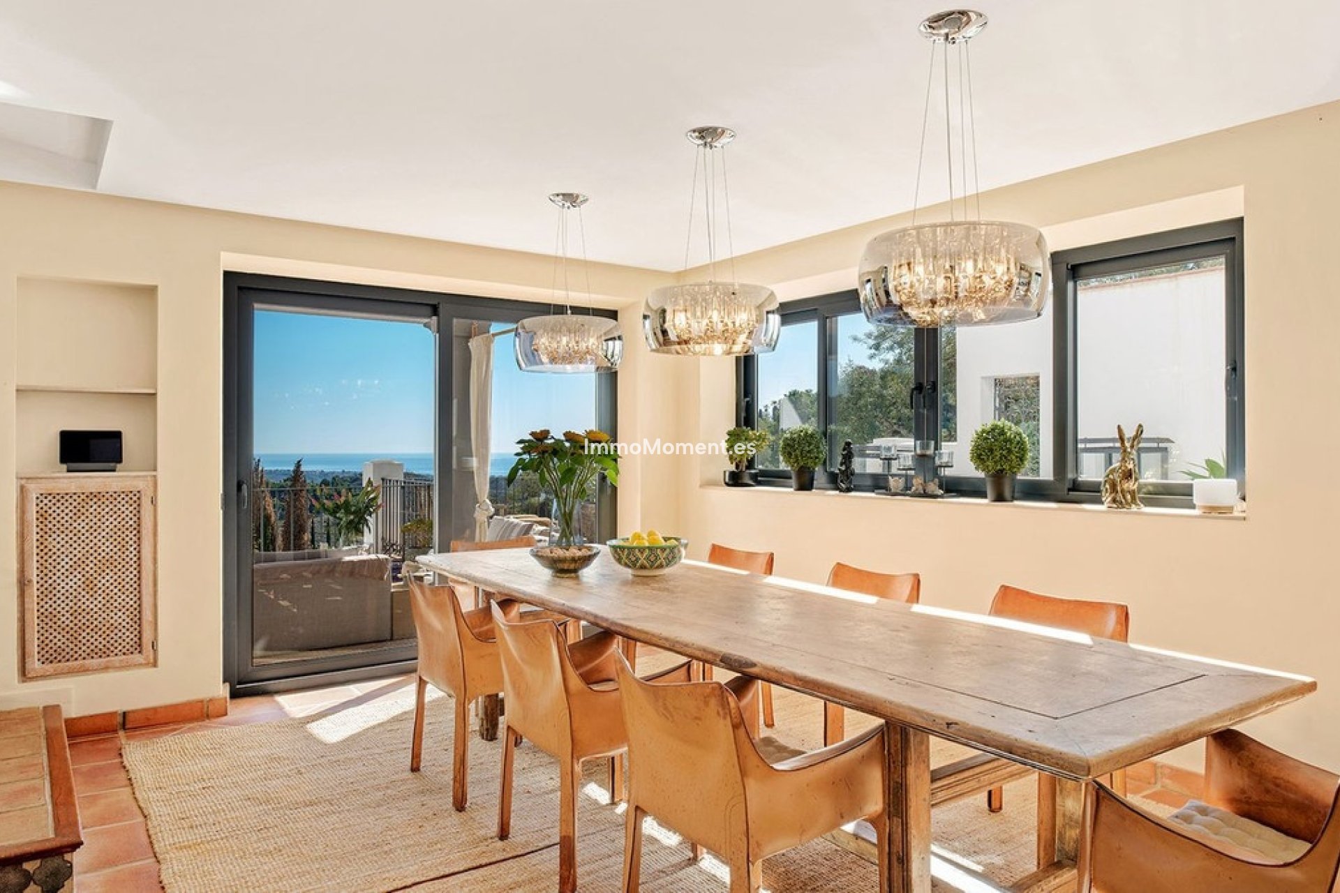 Deze villa in Andalusische stijl is volledig gerenoveerd met gebruik van de nieuwste hoogwaardige materialen en afwerkingen. Geen detail werd over het hoofd gezien om te zorgen voor een naadloze mix van tijdloze charme en hedendaagse elegantie.