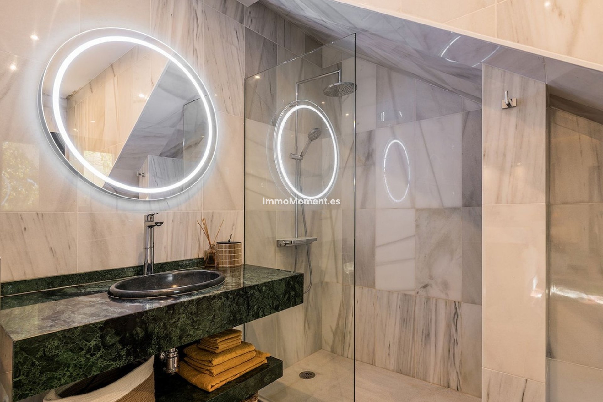 Op de bovenverdieping van de villa bevindt zich de hoofdslaapkamer, compleet met en-suite badkamer (met bad), douche en een grote inloopkast, privéterras met prachtig uitzicht op zee en de natuur. Op de benedenverdieping vind je twee gastenslaapkamers met elk een eigen en-suite badkamer, evenals een extra tweepersoonsslaapkamer met een aparte badkamer. Alle slaapkamers zijn voorzien van inbouwkasten en airconditioning voor koeling en verwarming. Voor nog meer comfort is het hele huis voorzien van vloerverwarming met aparte bediening in elke ruimte, zodat je overal de temperatuur naar wens kunt instellen.