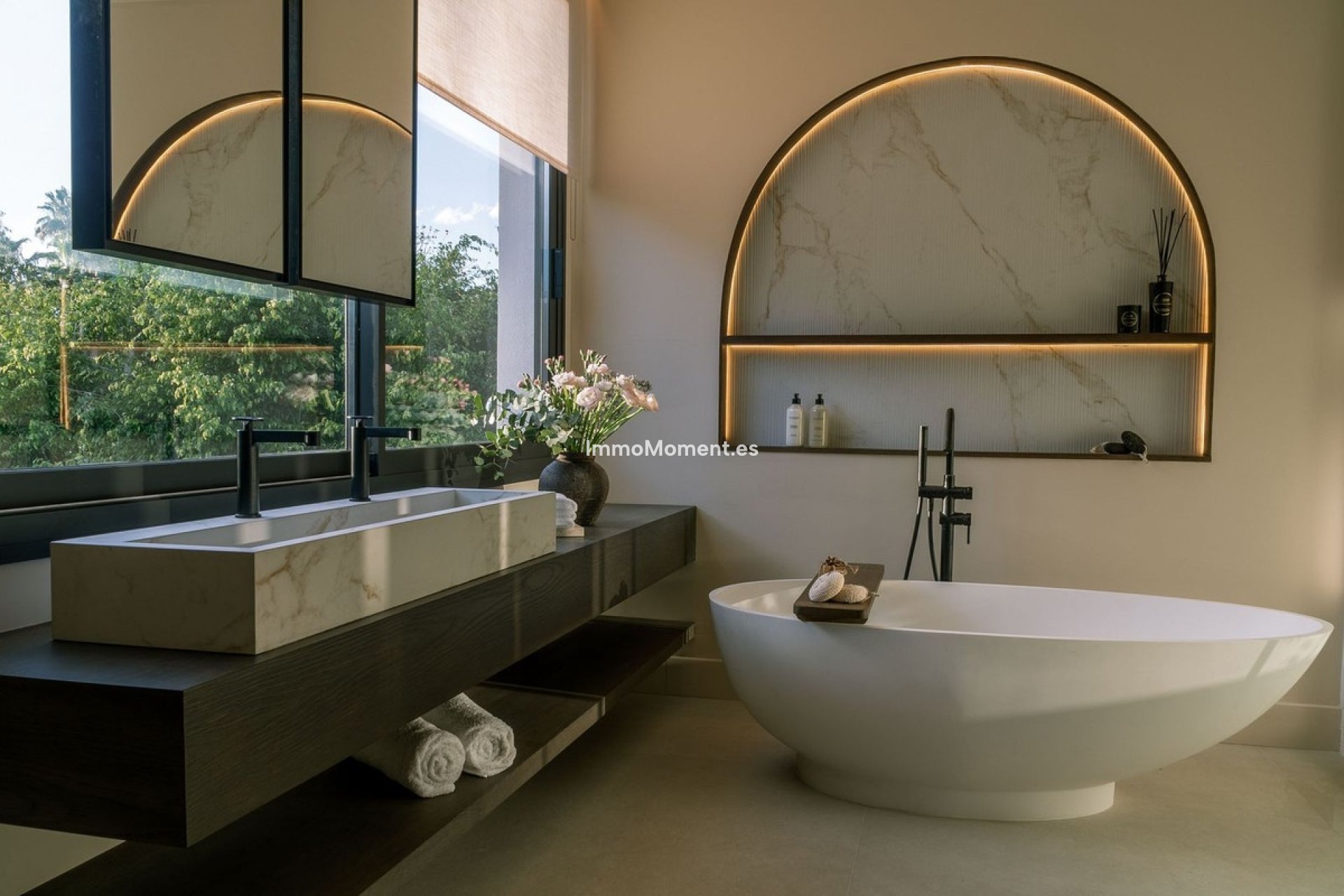 Welcome to this stunning villa in the heart of Nueva Andalucía, where privacy and modern convenience seamlessly blend together. Recently renovated in the serene Scandinavian-Japandi style, this exceptional home offers an elegant retreat that prioritizes comfort and tranquility.