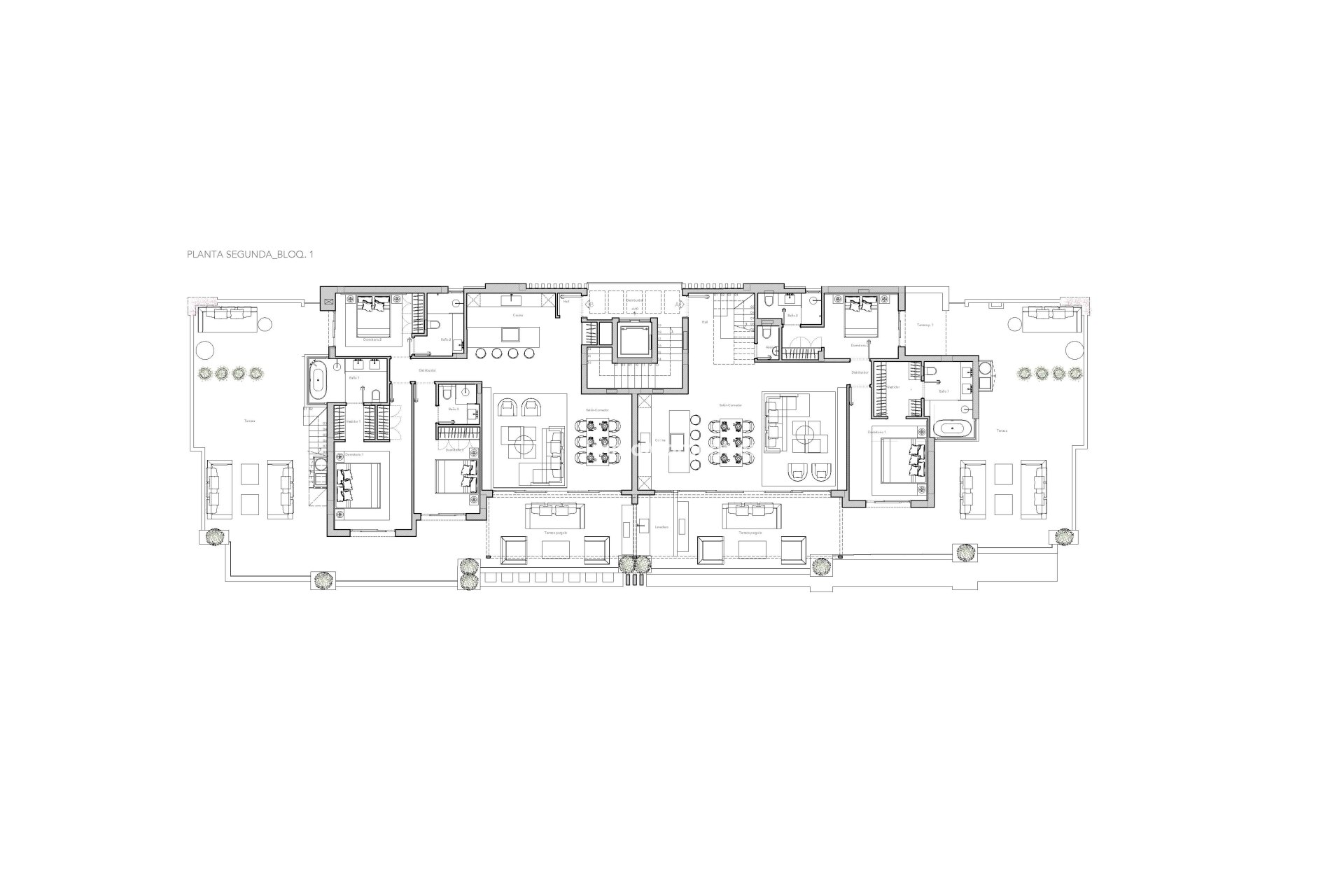 The interior of these properties has been designed with a focus on comfort and modernity. The homes offer between 2 and 3 bedrooms and are equipped with 2 or 3 bathrooms, ensuring ample space for families of different sizes. The inclusion of air conditioning ensures a pleasant environment throughout the year. Built-in wardrobes provide efficient storage, keeping spaces tidy and clutter-free. Additionally, the properties are equipped with modern appliances, facilitating the daily life of residents. Security is a priority, with a video intercom included in each home, offering peace of mind and access control.