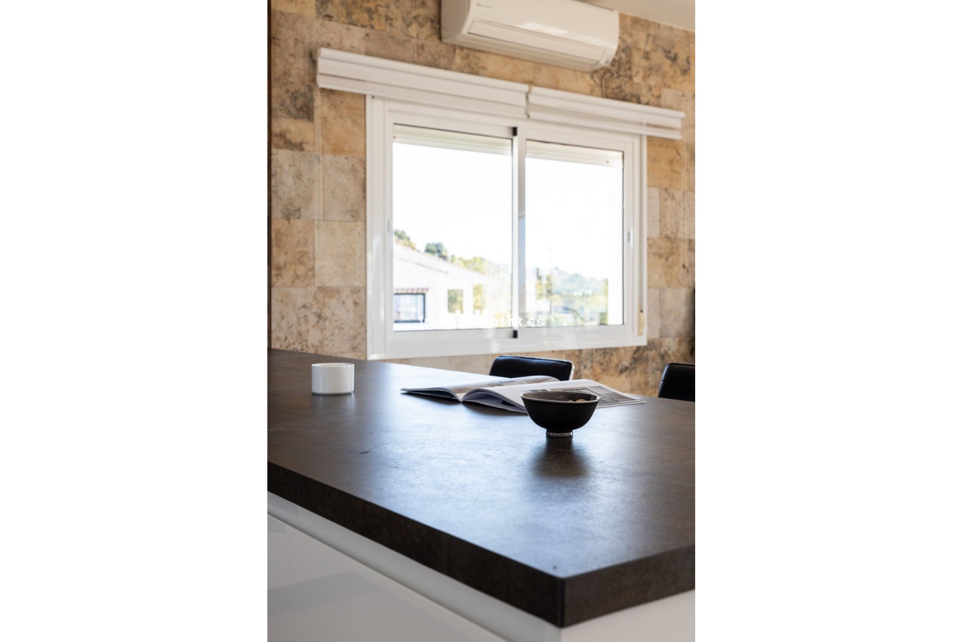 Downstairs there is another 54m2 room and a kitchen, which can be used to make a separate apartamento. On the same level is the garden and swimming pool area, which also has a view of the Mediterranean Sea.